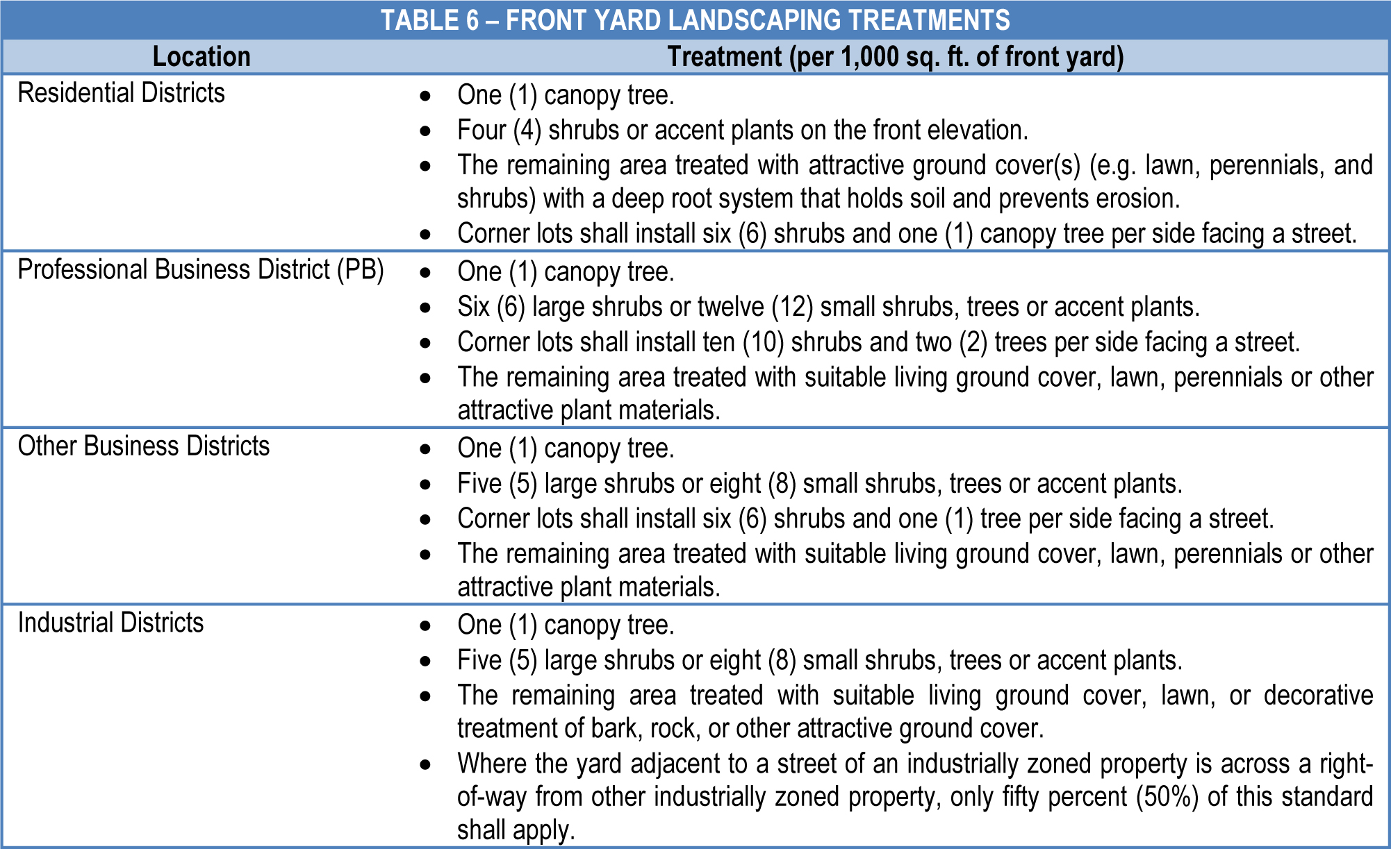 - New landscaping regulations, specifying approved types of treatments and plant materials.