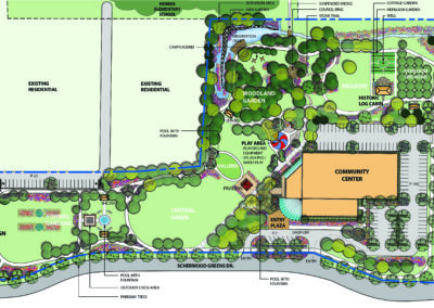 The growing community of Schererville was in need of recreation center for its expanding population. The Arsh Group prepared the master plan for this 9.8-acre facility. The park is expected to become a gathering place for the community for recreational needs as well as socialization. The plan’s goal is to expand the sense of community by bringing the old and the new together. It embraces elements of formal gardens with more naturalistic elements while maintaining some level of sustainability. The master plan offers opportunity for indoor recreational activities as well as space for a variety of outdoor activities. The park will be developed in different phases. The first phase has already been completed. Different elements of the park include: