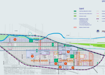 Gary’s Livable Center Plan 2025 aims to integrate transportation, land use, environment and economic development. The Arsh Group led a planning process to revitalize three central neighborhoods in Gary: Downtown, Emerson, and Horace Mann. The plan identified opportunities and established a series of strategies to address the needs. Proposed revitalization strategies centered on several “opportunity zones” for each neighborhood all aimed to meet the goals of the plan. These consisted of TID District around South Shore station, Civic District, with ample walkable facilities connecting a Civic Center to Railcat Stadium, and Medical District with it own walkable health based campus. Neighborhood preservation and stabilization strategies were also identified as a part of the plan.
