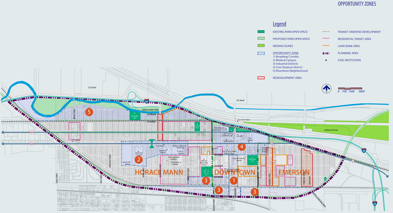 Gary’s Livable Center Plan 2025 aims to integrate transportation, land use, environment and economic development. The Arsh Group led a planning process to revitalize three central neighborhoods in Gary: Downtown, Emerson, and Horace Mann. The plan identified opportunities and established a series of strategies to address the needs. Proposed revitalization strategies centered on several “opportunity zones” for each neighborhood all aimed to meet the goals of the plan. These consisted of TID District around South Shore station, Civic District, with ample walkable facilities connecting a Civic Center to Railcat Stadium, and Medical District with it own walkable health based campus. Neighborhood preservation and stabilization strategies were also identified as a part of the plan.