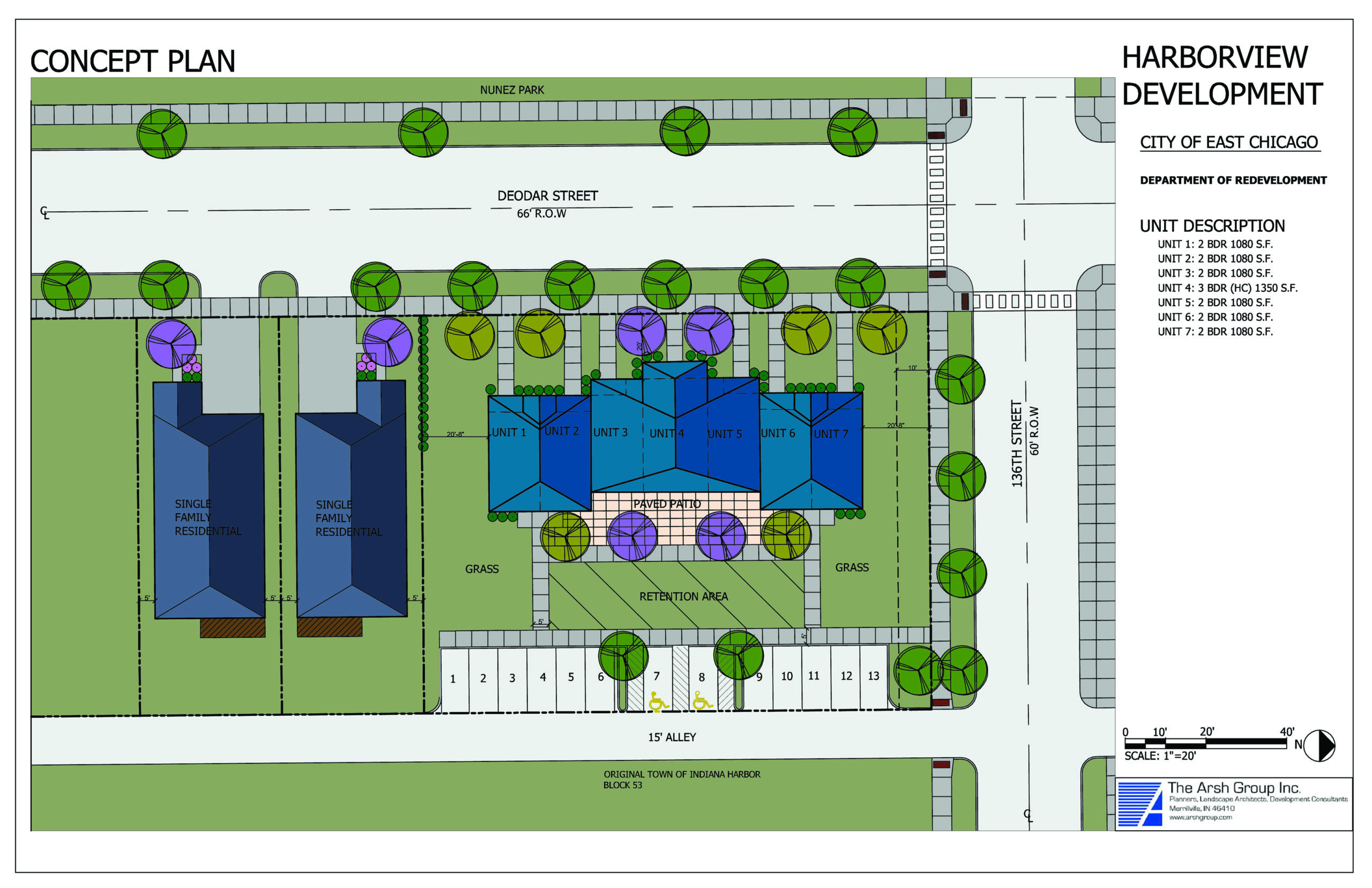 The Harborview development dates its origin to an earlier strategic plan that the Arsh Group prepared for the East Chicago Housing Authority. Under that plan, several sites were identified to assist the Authority to implement its transformation strategies. The Harborview development was part of a larger redevelopment effort for the city’s Harbor Neighborhood. Assistance provided by the Arsh Group for this project consisted of the following: