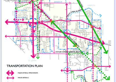 The transportation element of the plan embraces transit oriented development, non-motorized transportation, and a series of other policies ranging from shared parking to mixed use development to create denser and more transit-friendly developments.