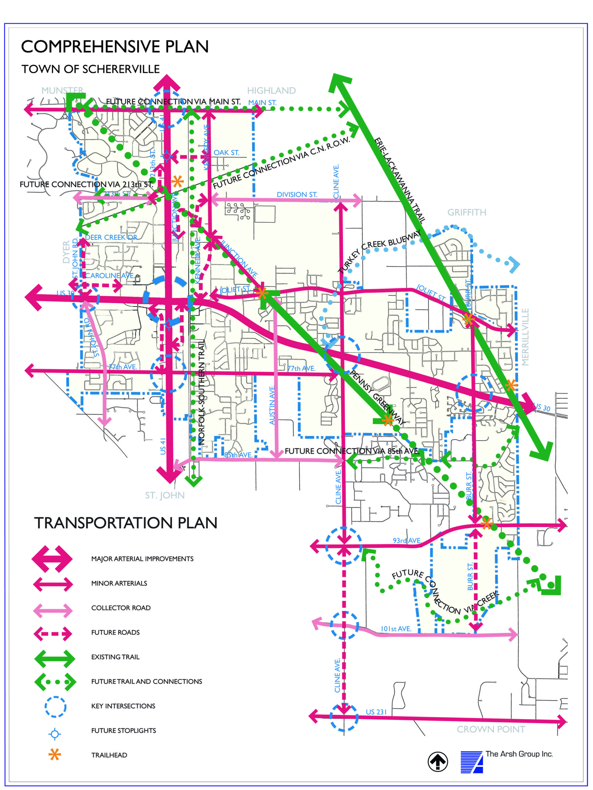 The Town of Schererville has experienced substantial growth in recent years. The Town was concerned about undesirable outcomes of unmanaged growth in the community. The Town retained the services the Arsh Group to develop a new Comprehensive Plan to guide its growth and development decisions. The Town also envisioned that the Plan will be fully supported by the residents, Plan Commission and the Town Council.