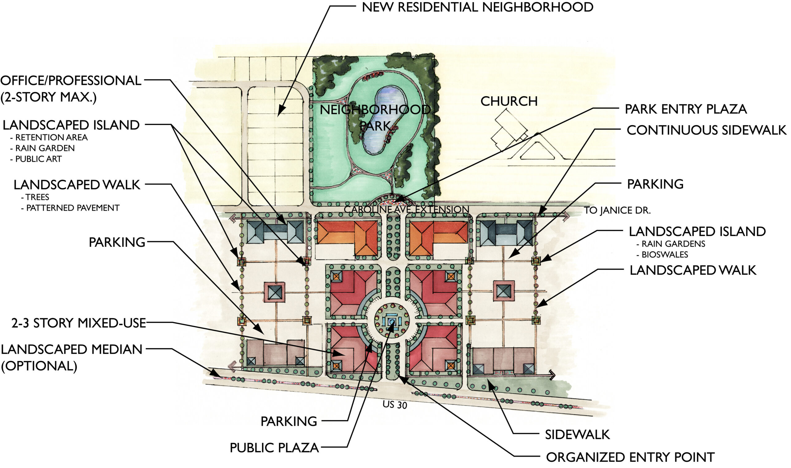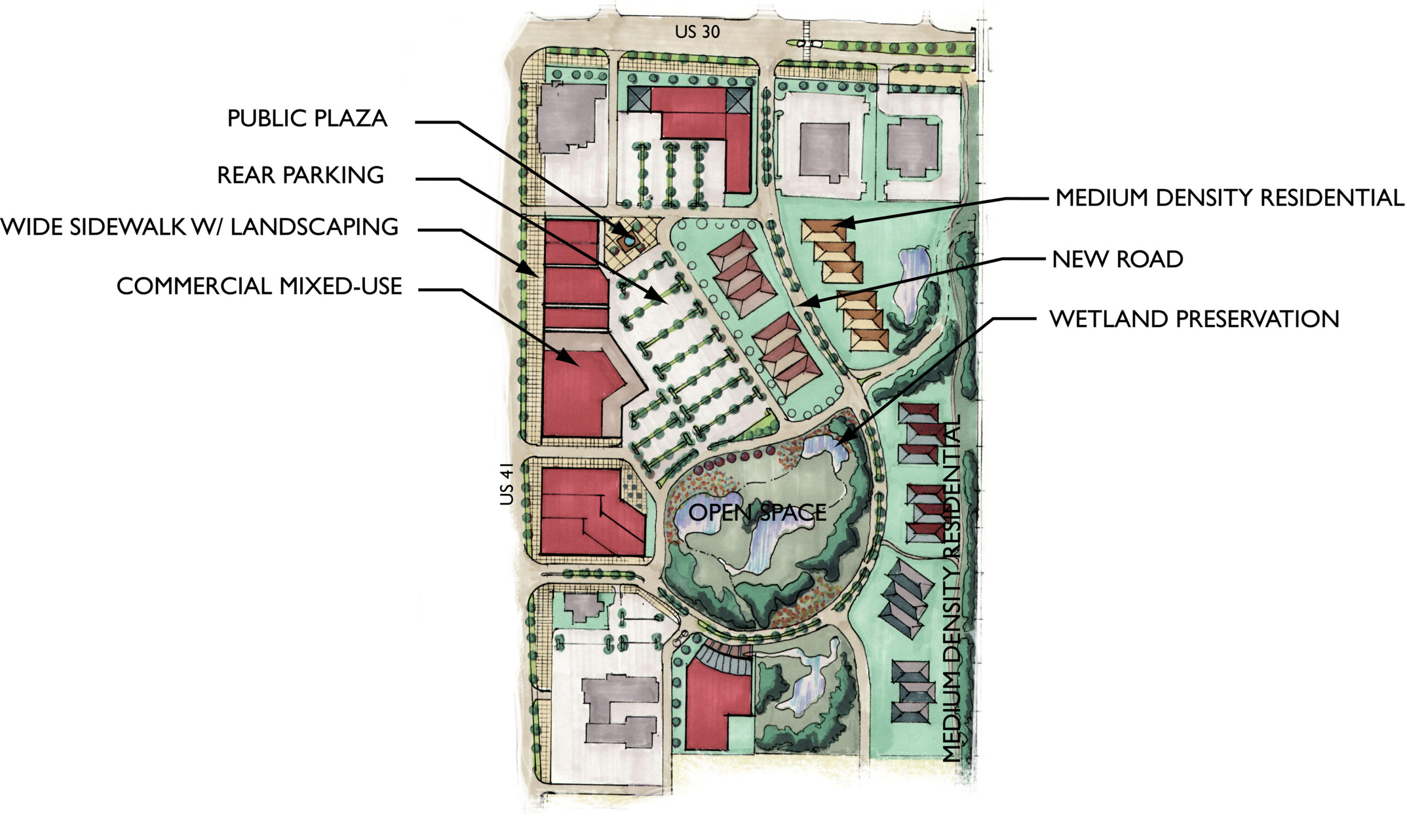 The planning process for the plan started with several workshops with the residents. With its boundaries almost fixed, Schererville’s decision about future growth and development was less about adding territory and more about qualitative aspects of the community. Therefore, the Comprehensive Plan tells less about where development must go and more about how development should shape the community.