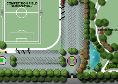 In an effort to address the needs of a growing neighborhood, the Town of Munster asked The Arsh Group to prepare plans for a new multi-use park in the West Lakes Neighborhood. The site was vacant land (25 acres) consisting of grass and a small drainage way. The Town’s objective for the park was to address the recreational needs of the residents, while expanding available athletic facilities. The Arsh Group conducted an extensive survey of needs, had several community meetings, and identified issues that need to be addressed. The issues ranged from neighborhood recreational needs, to access and parking, additional traffic, and storm water management. The community process resulted in the development of two distinct areas for the park: a neighborhood park on the south side of the site, closer to the residents, and a larger multi-use athletic facility to the north. The first phase of the park—the southern neighborhood park—was completed in 2009. The second phase—which adds football & soccer fields, basketball & tennis courts, enhanced stormwater management areas, parking with rain gardens, and nearly one mile of new walking paths—was opened in 2013. A third phase of development, which included an expansion of the sports complex and walking paths, was completed in 2016.