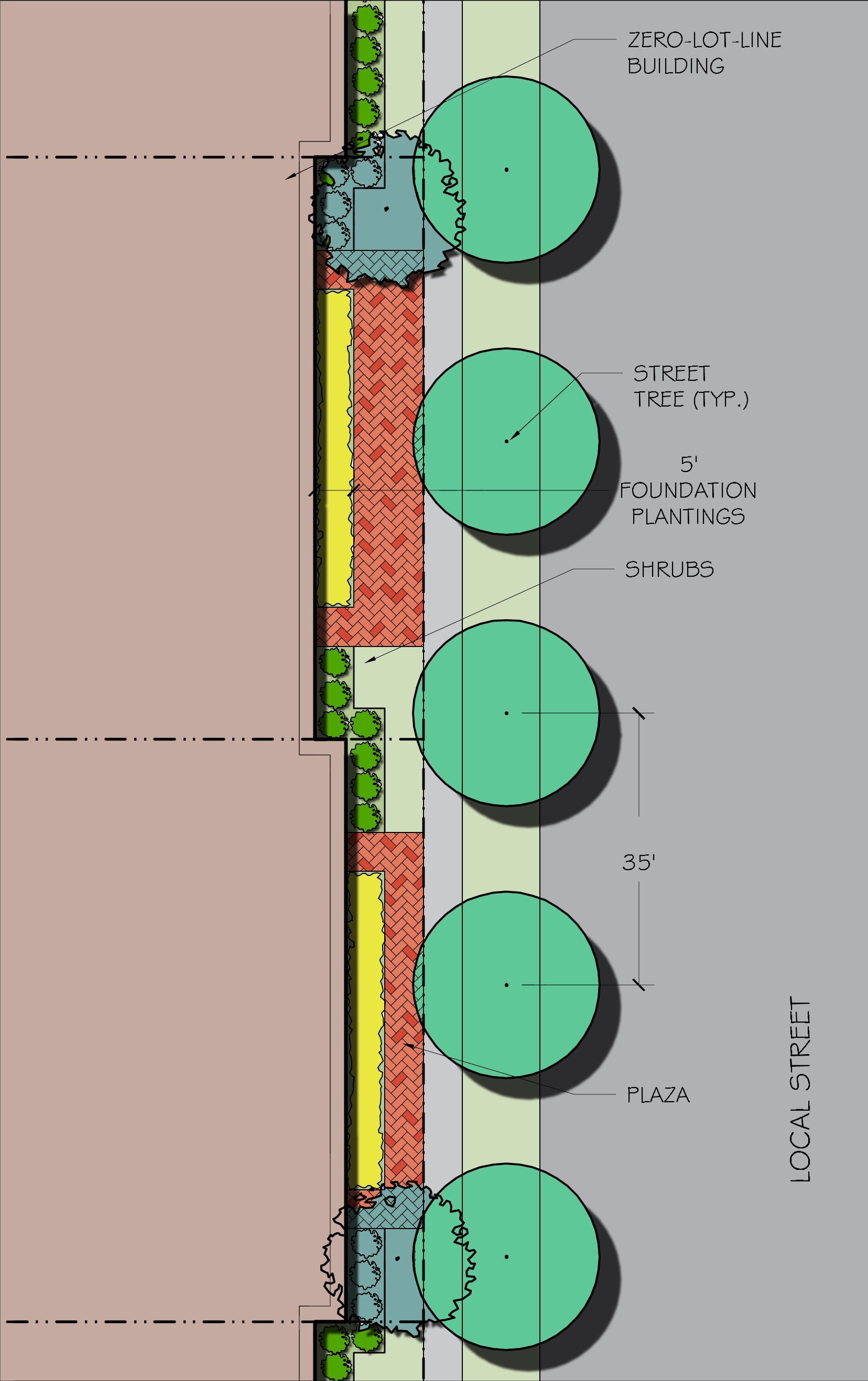 With the previous ordinance being adopted in the late 1980s, the work required substantial streamlining and updating to fully incorporate the various amendments over time. In addition, taking guidance from the Comprehensive Plan, several new sections were drafted to promote quality design and development for Schererville’s future growth. These new and modernized sections include regulations for mixed-use development, wind/solar power, parking, landscaping, and incentives for “green” and environmentally friendly development. Over fifty different prototype details were also developed to illustrate these new concepts. In addition to defining and updating standards for existing districts, three overlay districts were created for US 30, US 41, and Downtown, incorporating several additional design and development standards to preserve and enhance the character of those areas.